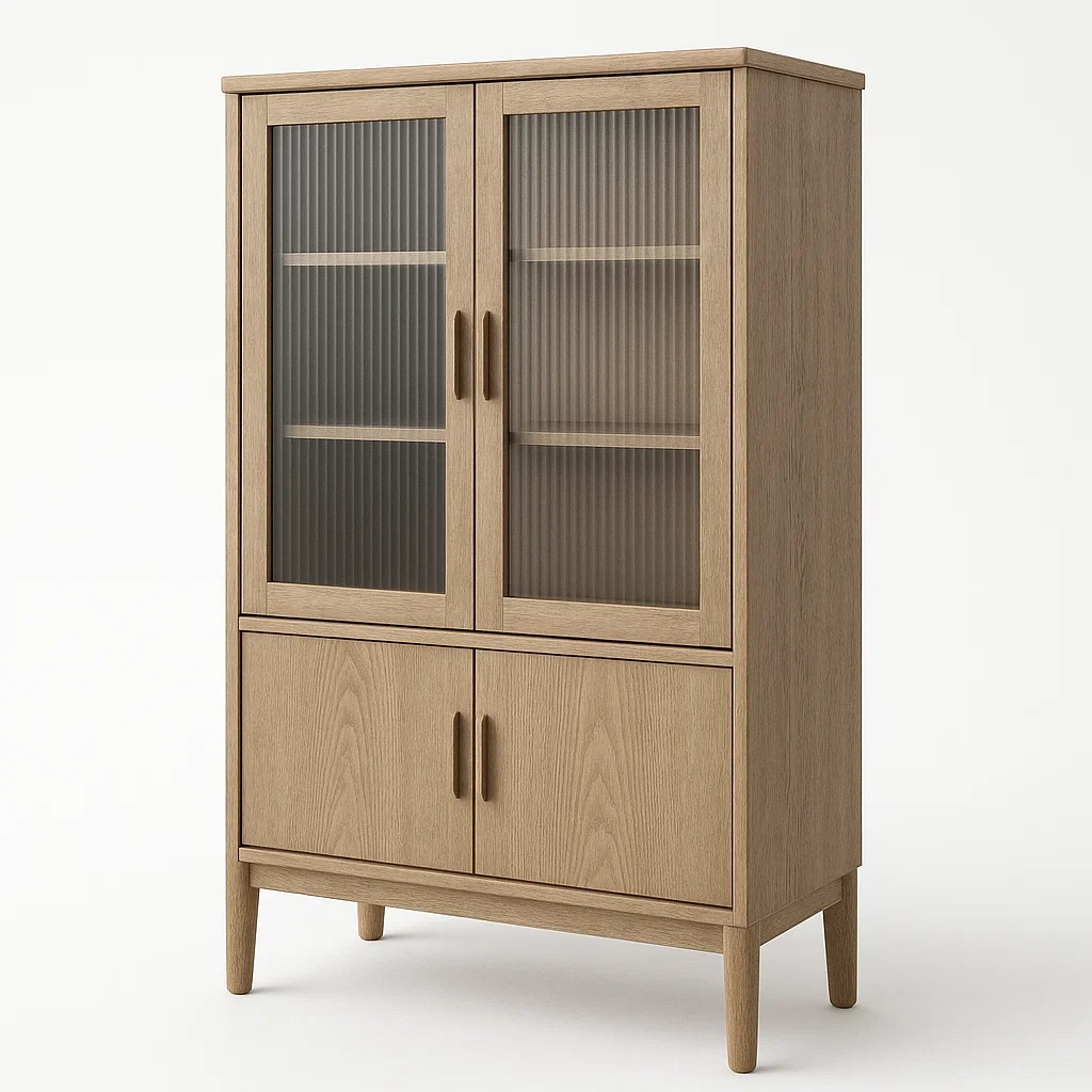 Vitrine d'exposition en bois avec portes vitrées cannelées chêne clair 80x40x120 cm